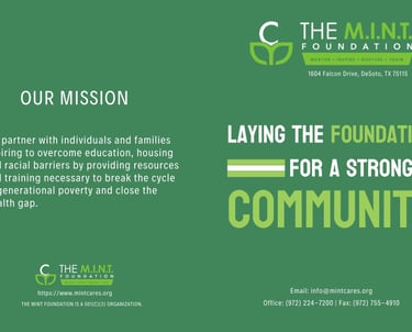 We designed this presentation folder for The MINT Foundation to enhance their professionalism during meetings with potential grantors and donors. Featuring a polished layout and branded elements, the folder is tailored to effectively organize and present materials, leaving a lasting impression on stakeholders.
